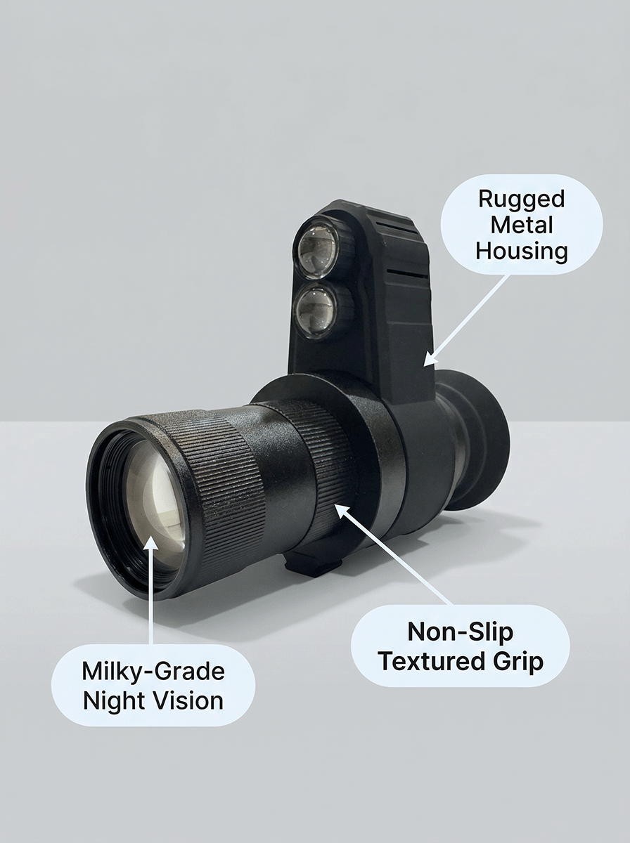 This is the actual view captured through our night vision monocular— even in complete darkness, it locks onto your target with clarity, preserving every detail.